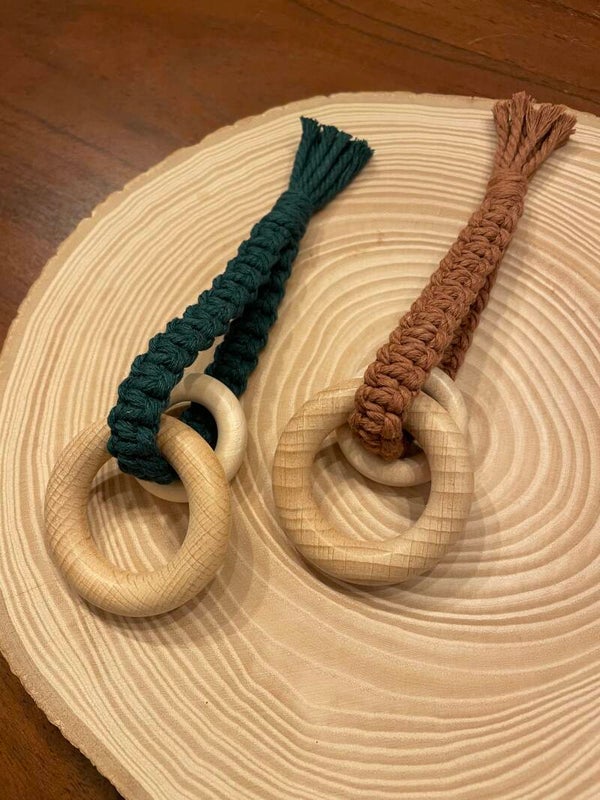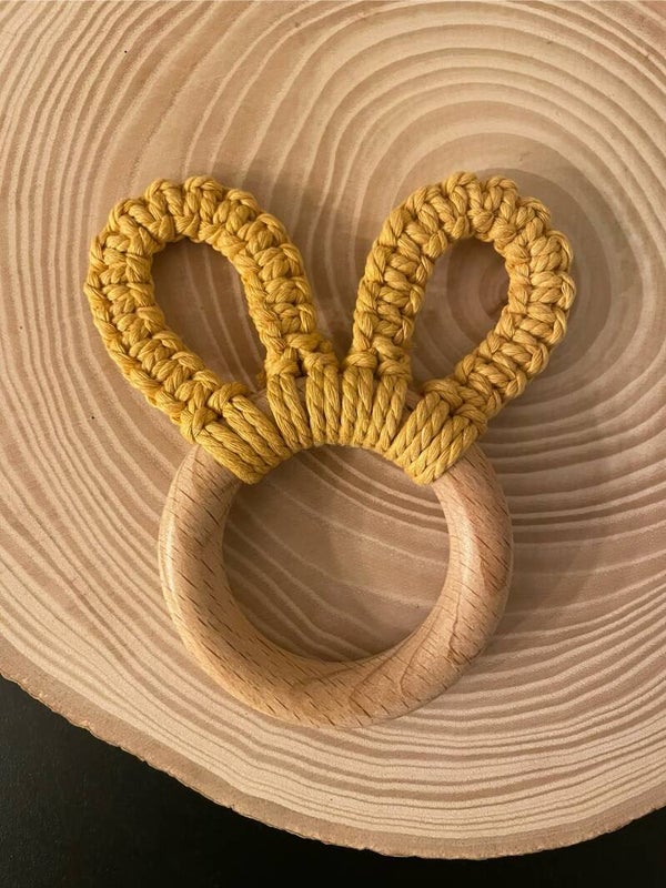 Diese handgefertigten Greiflinge/Beissringe aus Makramee, unbehandeltem Holz und im schlichten Schlaufen- oder niedlichen Hasenohrmuster sind perfekt für kleine Entdecker. Das weiche Makramee sorgt für angenehmes Greifen, während das natürliche Holz zum Kauen einlädt. Ein liebevoll gestaltetes, sicheres Spielzeug für Babys, das sowohl Spaß als auch Beruhigung bietet!